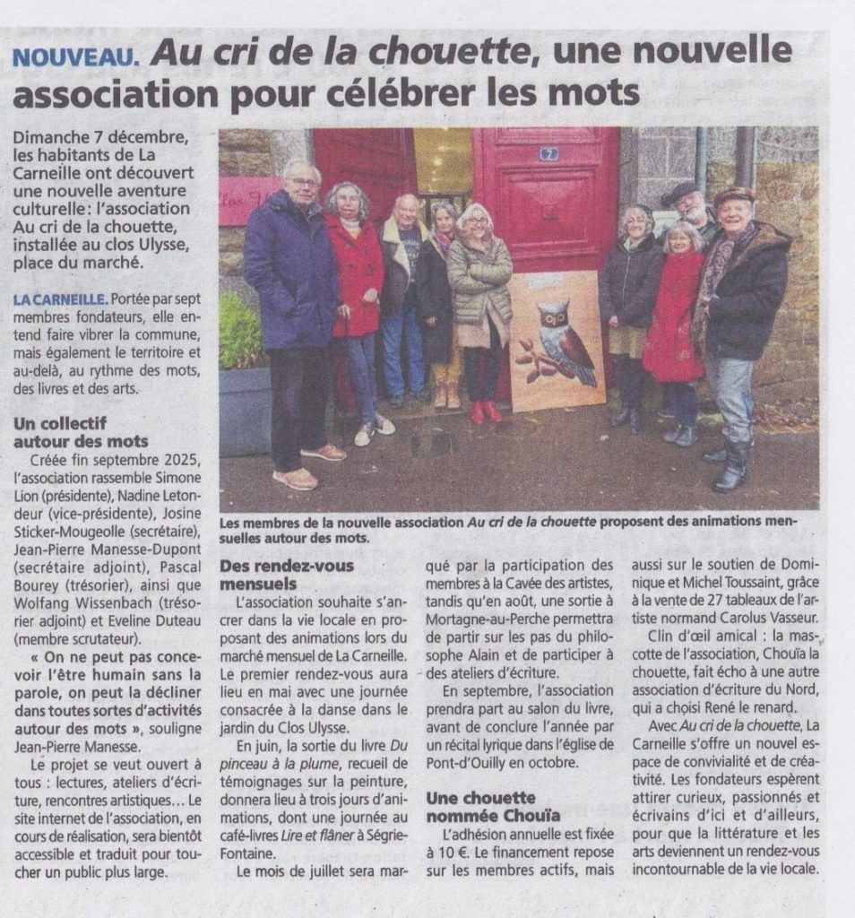 Article tiré de l’hebdomadaire Orne Combattante sur la création de notre association le 7 décembre 2025.